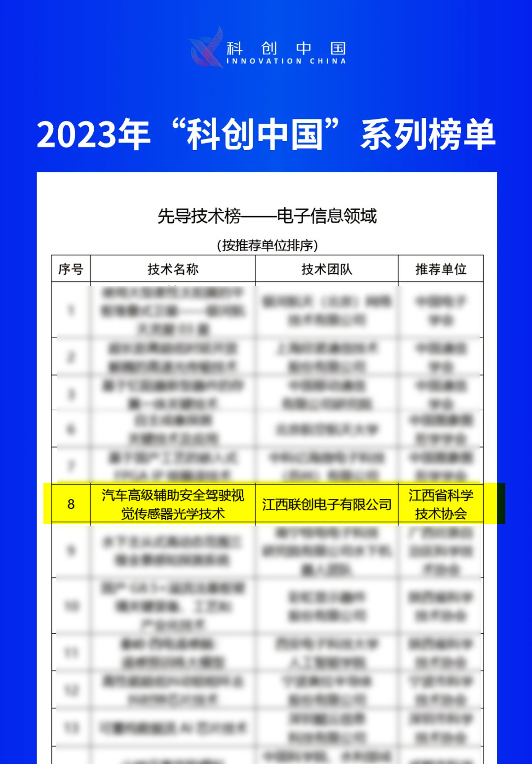 近日,中国科学技术协会公布了2023年度“科创中国”系列榜单遴选结果,江西开云网页版登录入口有限公司的“汽车高级辅助安全驾驶视觉传感器光学技术”成功入选电子信息领域先导技术榜。